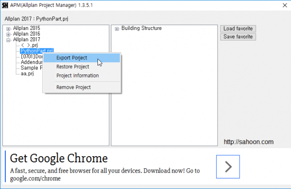 - Project백업, Project삭제, Project Favorite 등 Allplan추가기능